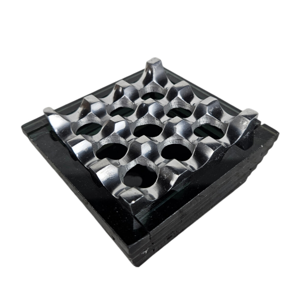 Measuring 9 x 9 x 4 cm, this compact yet elegant ashtray is designed to add a touch of modern sophistication to any space