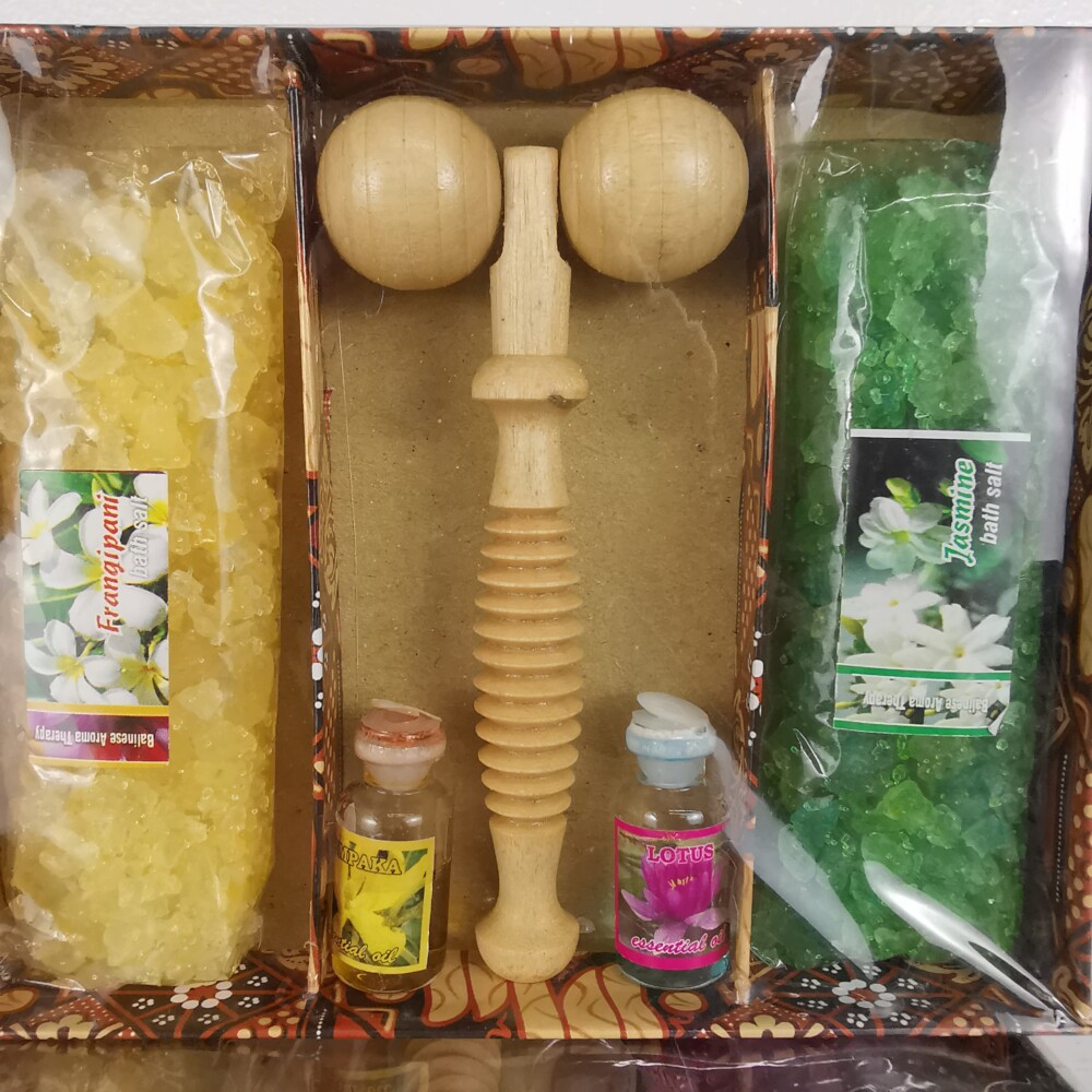 This Wonderful Set Consists of : A Roller , 2 Bath Salts And 2 Essential Oils