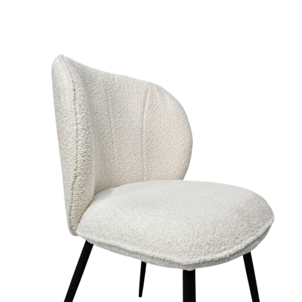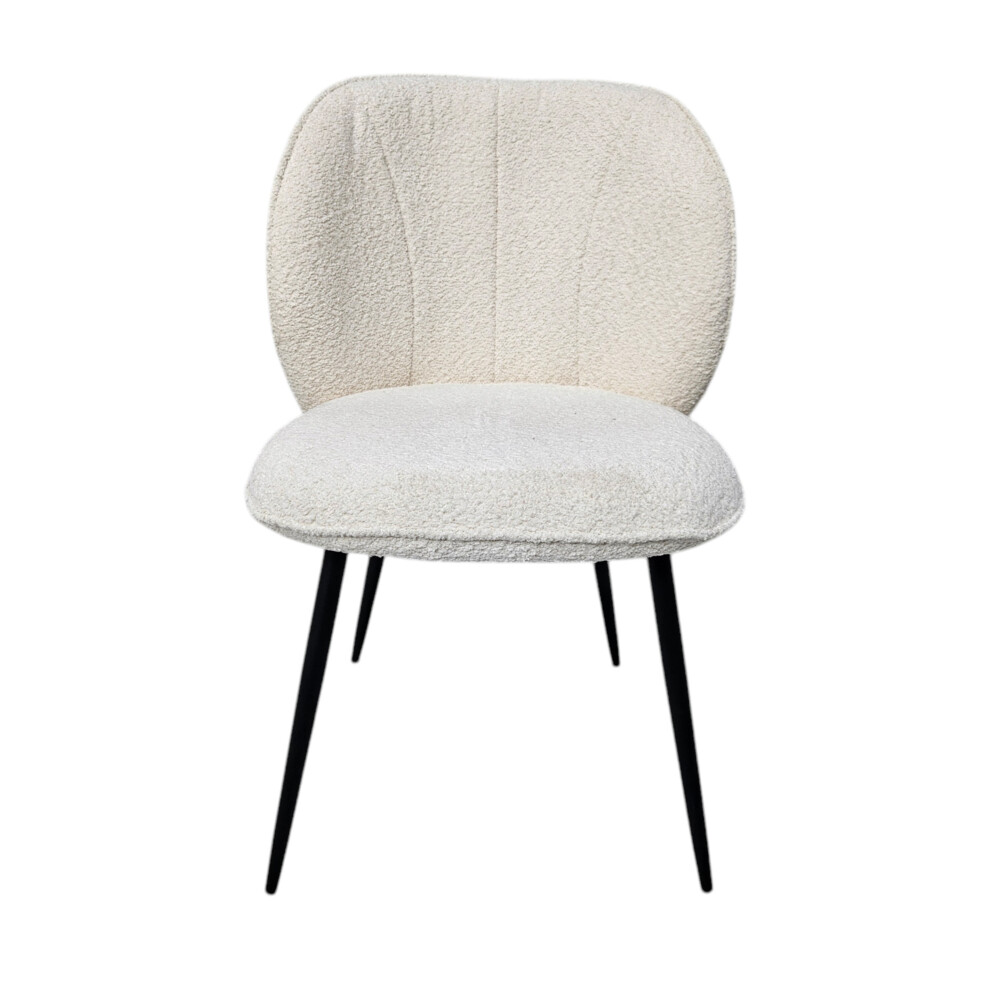 The gently tapered black legs provide a sleek contrast, ensuring stability and modern appeal. Whether used as a dining chair or an accent piece, the Celia Dining Chair brings an element of contemporary charm and understated luxury to any interior.