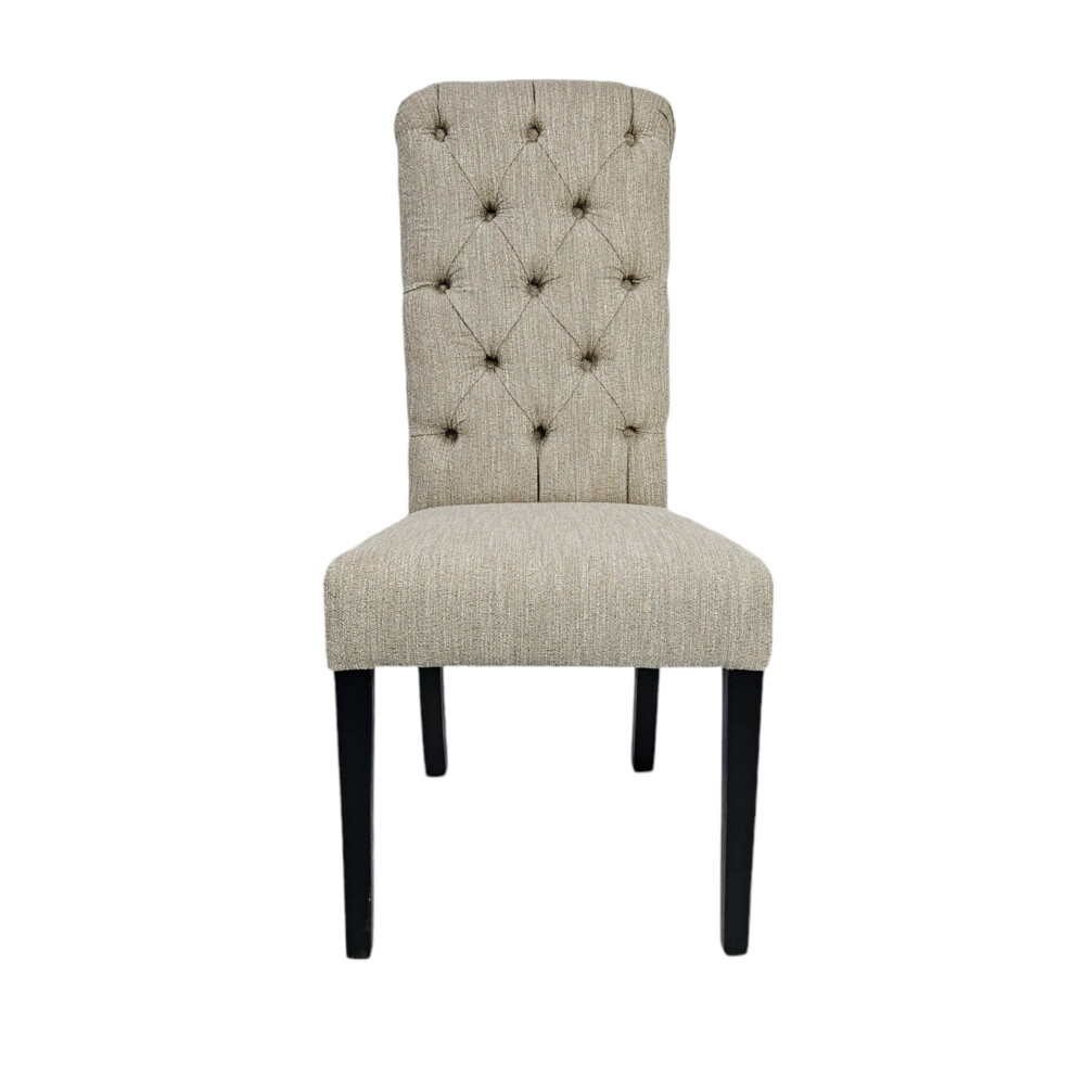 Transform your dining room with the timeless elegance of the Venic Dining Chair in Firgrove Moon Grey fabric. This chair features a classic tufted backrest that adds a sophisticated touch to any dining space, while the plush upholstery provides both comfort and style
