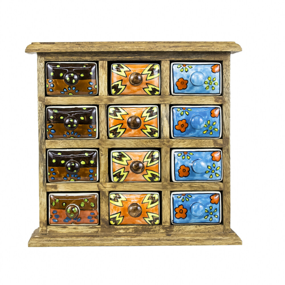 Crafted with precision and care, this exquisitely designed box features hand-painted ceramic drawers that seamlessly fit into a robust wooden frame, offering an elegant and practical storage solution for your favorite spices.