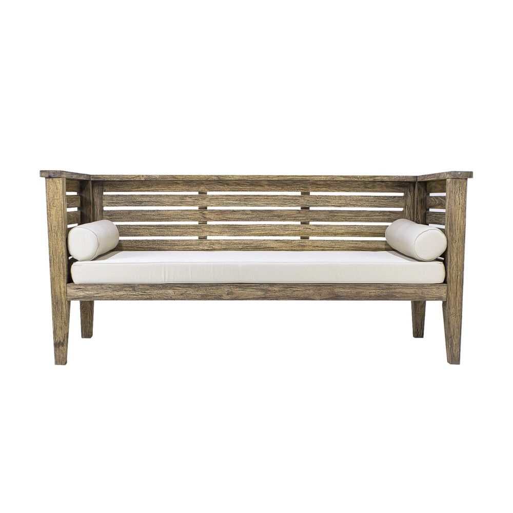Daybed bench crafted from solid Teak with comfortable pillows
