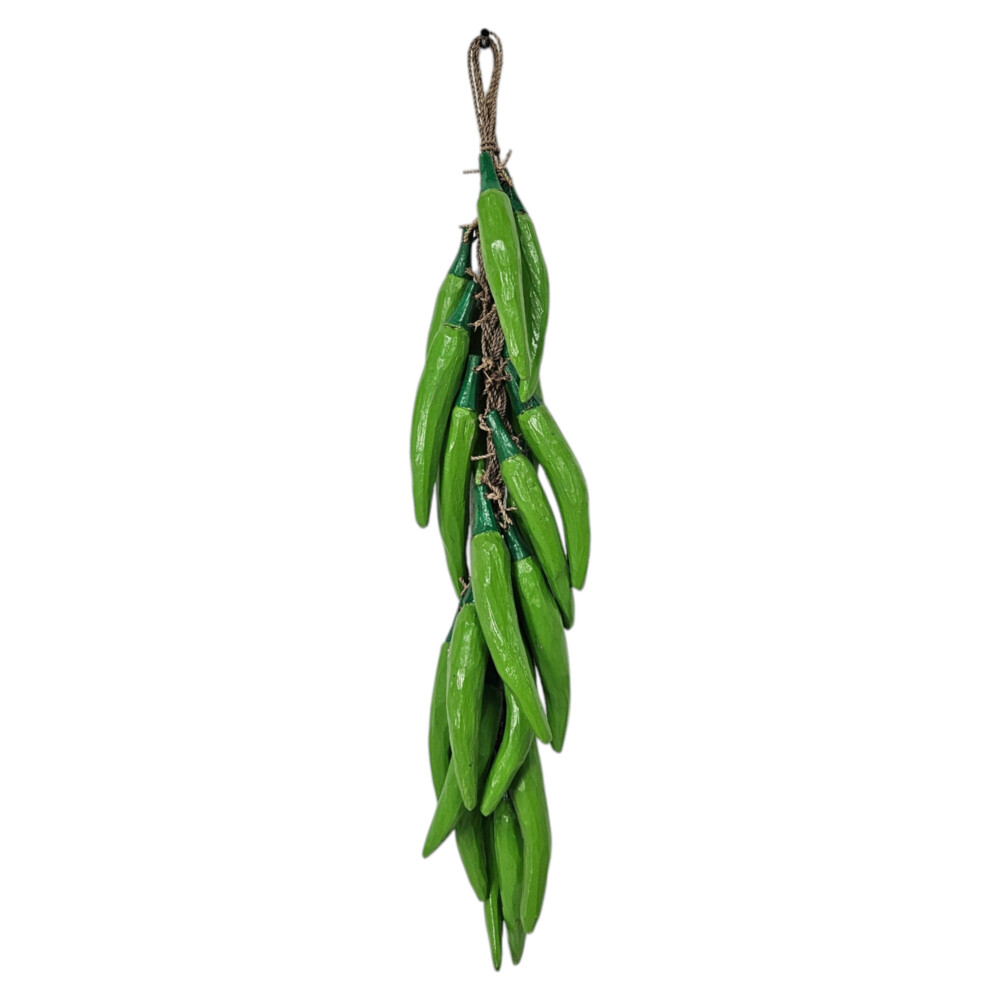 Perfect for adding a vibrant touch to your kitchen, dining area, or outdoor setting, this eye-catching piece features lifelike green chillis carefully strung together with rustic twine