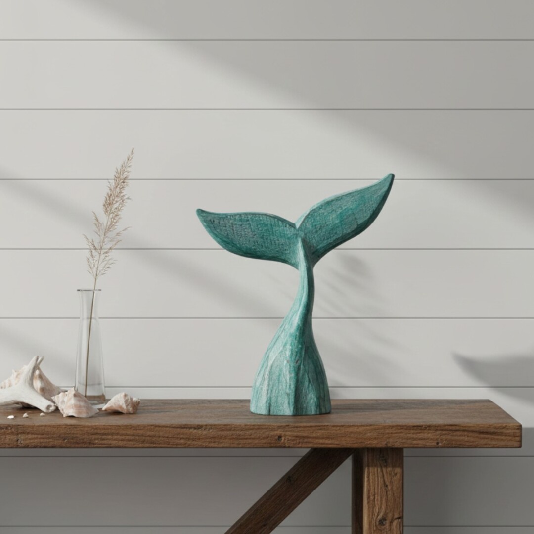Capture the essence of coastal charm with this beautifully handcrafted Wooden Whale Tail