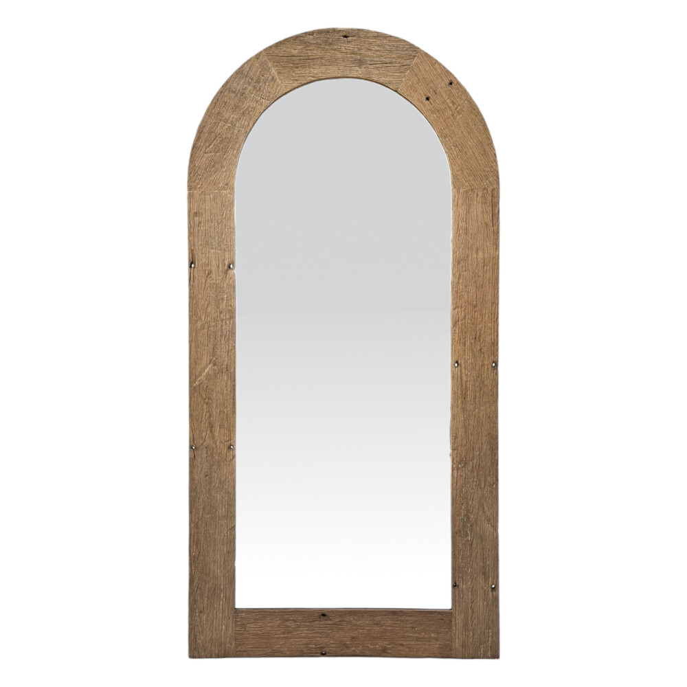 Elevate your interior with the timeless elegance of the Erosi Aged Teak Arch Mirror