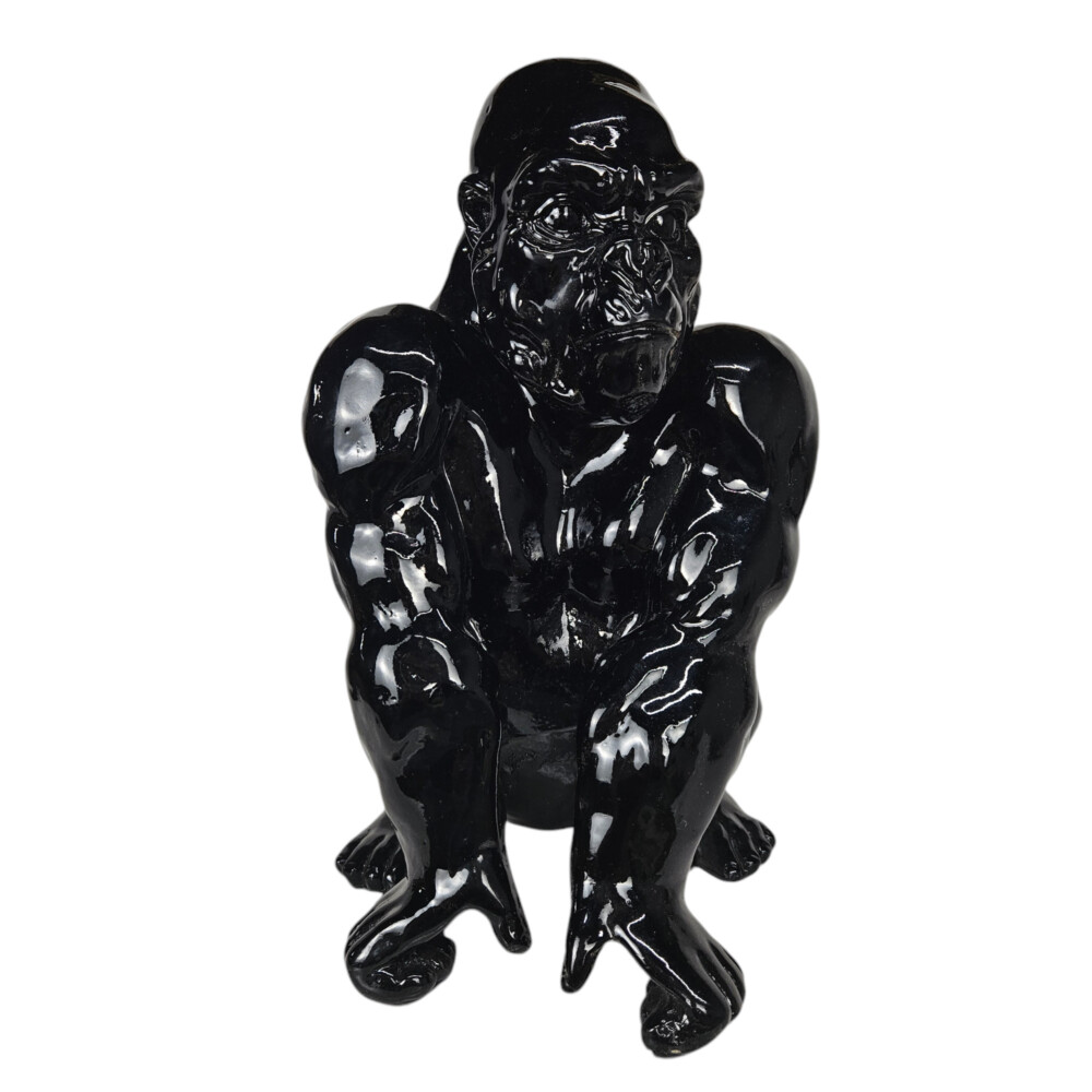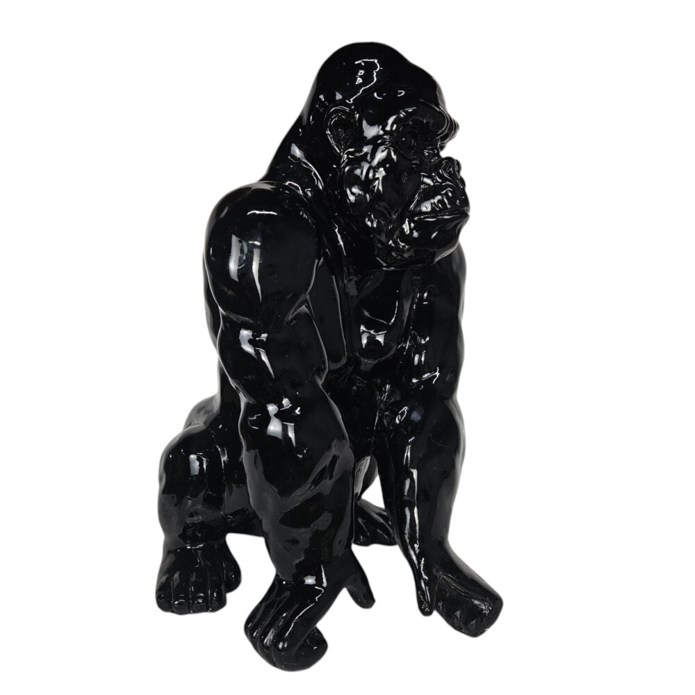 Add a bold and modern statement to your décor with this stunning gloss black gorilla sculpture.