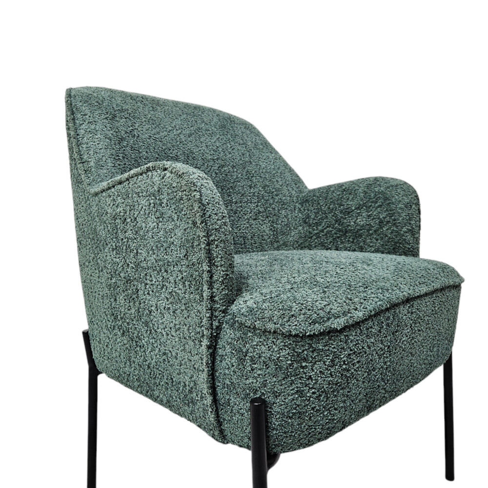 The deep green hue adds a touch of luxury, while the plush cushioned seat and gently curved armrests provide superior comfort
