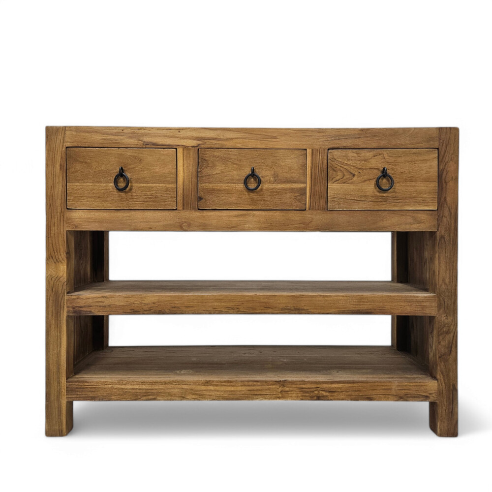 Designed with three spacious drawers, it provides convenient storage for everyday essentials, while the two open shelves offer additional space for displaying décor, books, or baskets