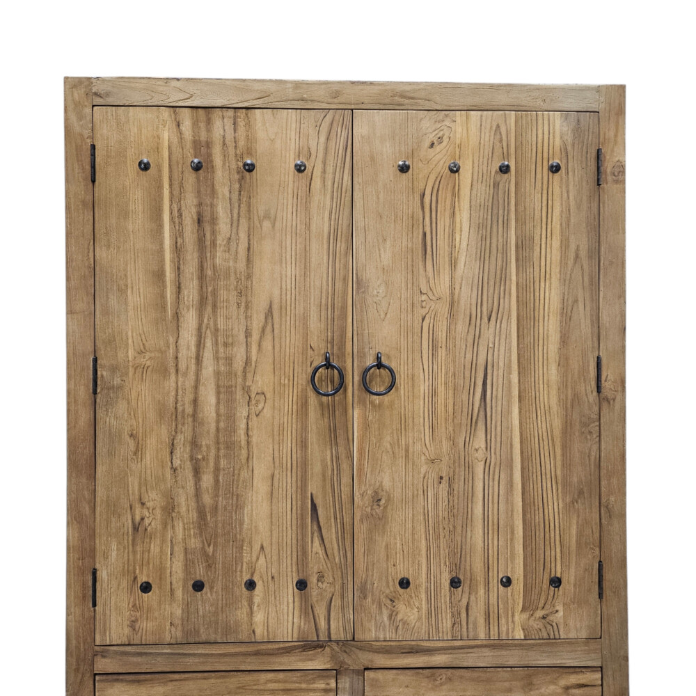 The Harvest Teak Cabinet is a beautifully crafted storage solution that blends rustic charm with timeless functionality
