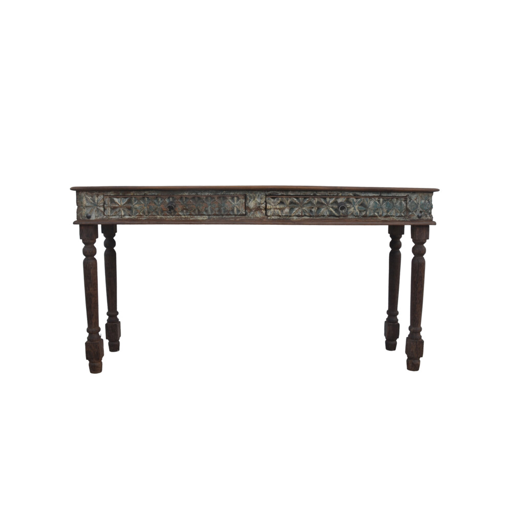 Crafted from solid wood, the console’s turned legs add elegance and stability, while the antique-inspired patina gives it a sense of history and depth