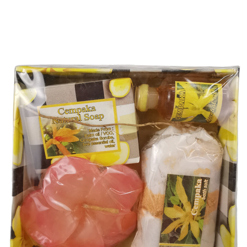 This Wonderful Set Consists of : A Soap , A Candle , Bath Salt And Essential Oil