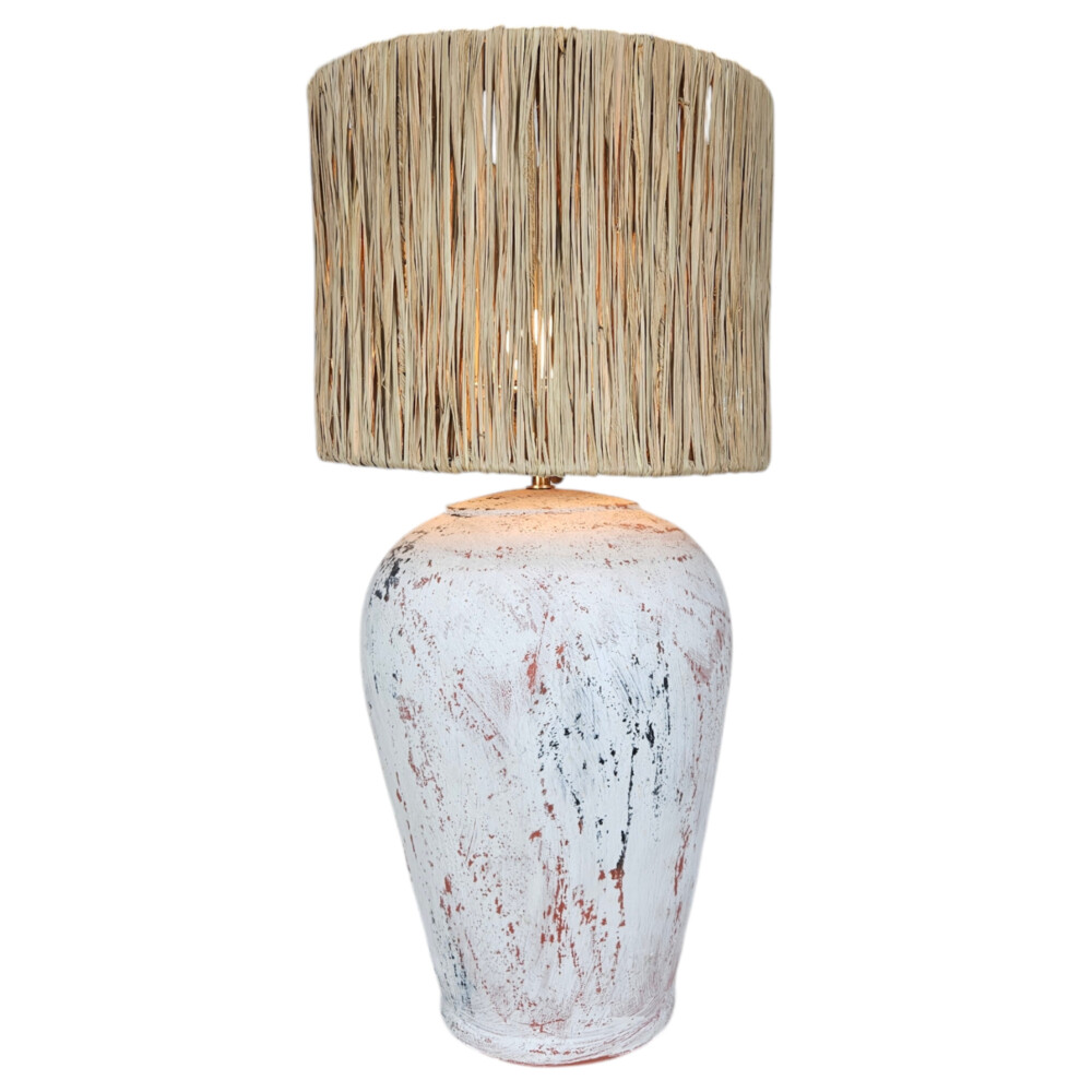 Bring rustic elegance to your space with this Pottery Lamp, featuring a beautifully crafted base with subtle white-wash detailing