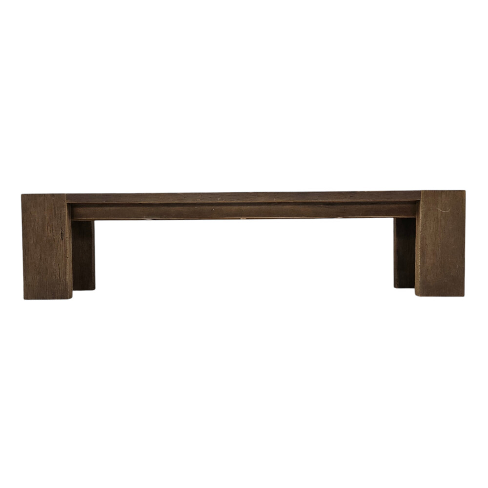 Designed with thick square legs seamlessly joined into the seat, this bench embodies durability and strength while maintaining a rustic, understated elegance