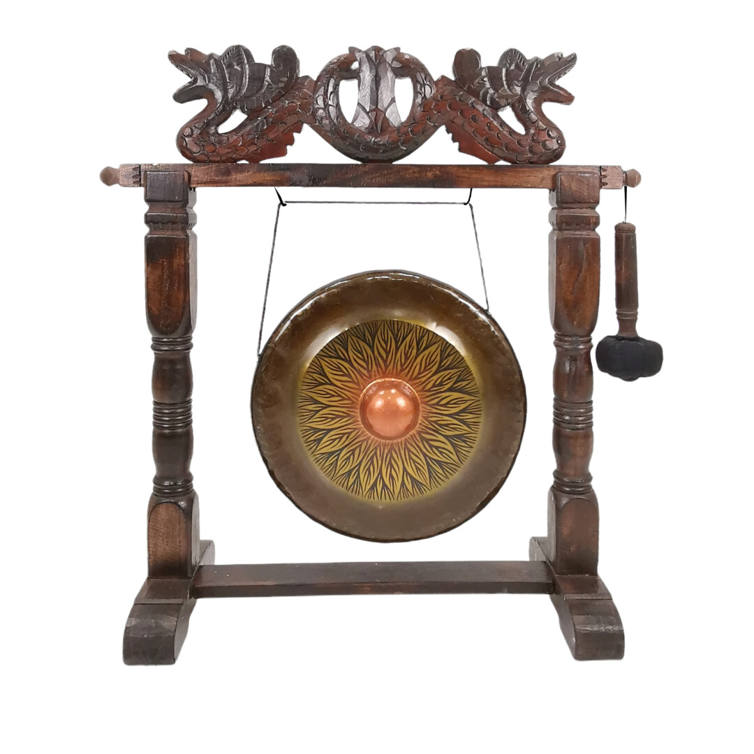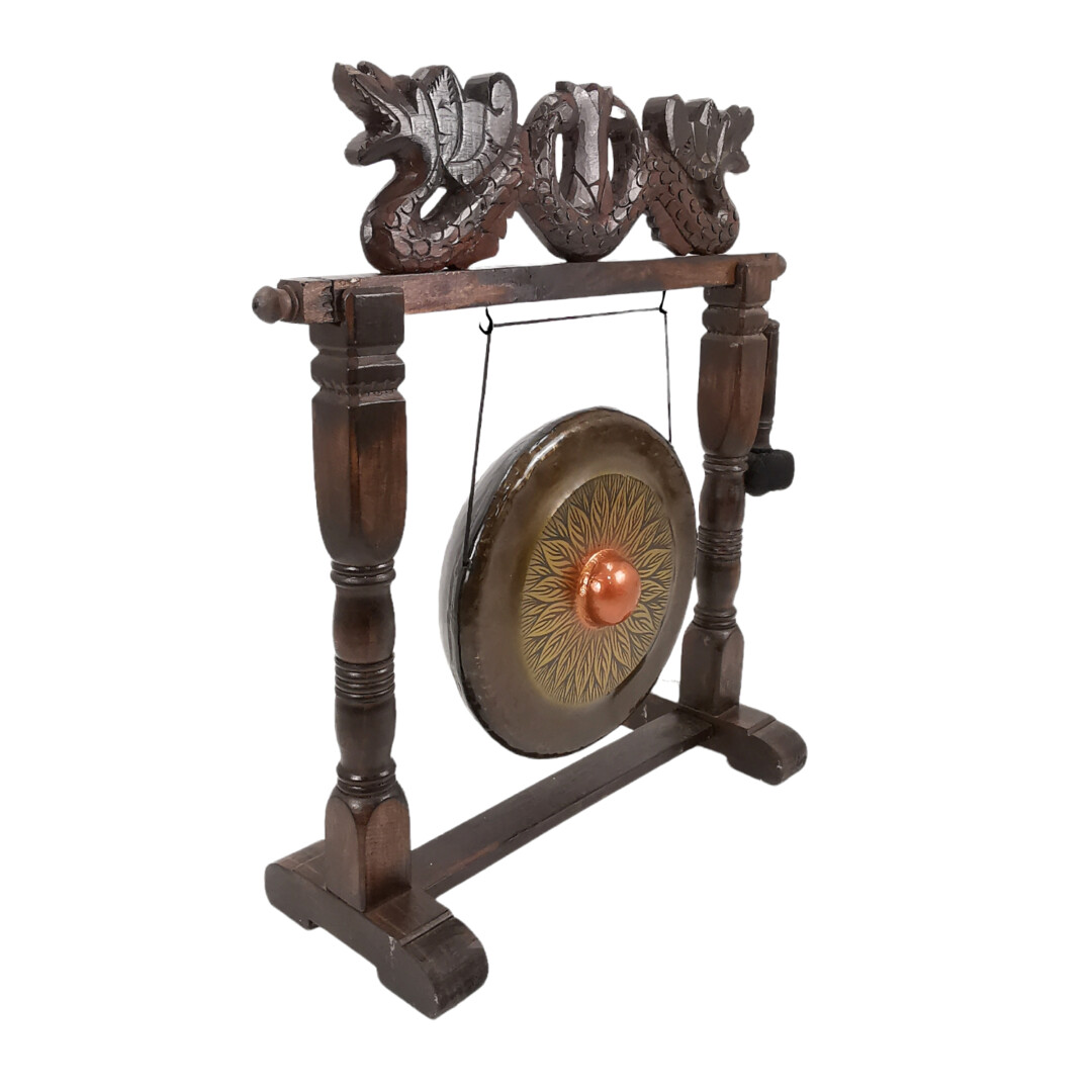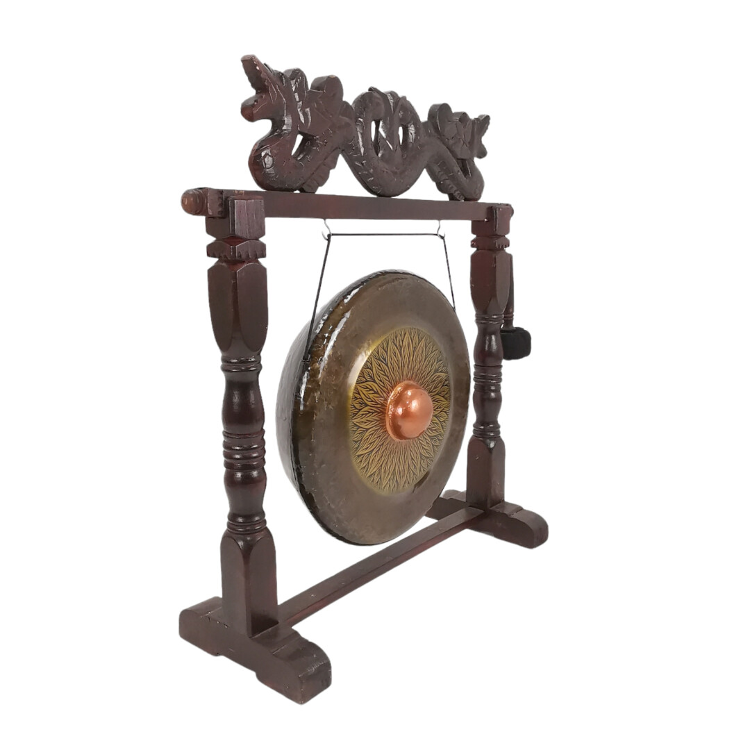 Each gong is meticulously adorned with authentic hand-carved dragons, symbols of power and protection in Chinese culture, infusing sophistication and depth into its design.