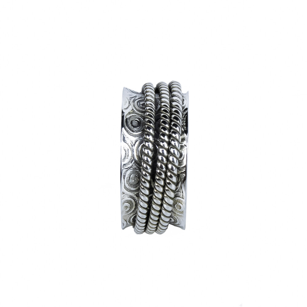 Our quality 925 sterling silver spinner rings are hand-crafted. Multiple Bands with intricate designs turn freely around a central band. Spinning the rings in stressful times distracts the brain from focusing on negative thoughts and nervous energy. This helps to reduce anxiety and tension levels. Thoughts become focused, and the wearer calms down and feels good!