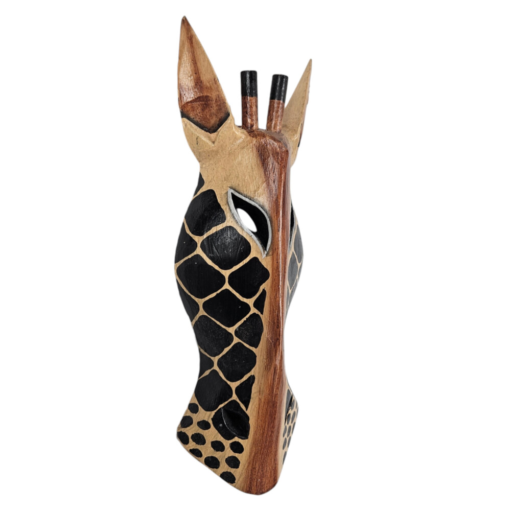 Bring a touch of the wild into your home with this striking Wooden Giraffe Mask Wall Hanging. Hand-carved from high-quality wood and painted with meticulous attention to detail, this mask captures the essence of the giraffe, making it a captivating addition to any space