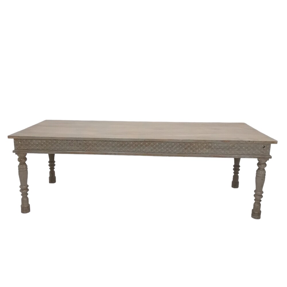 Invest in our light-colored wooden carved dining table to elevate your dining room into a space where every meal becomes an occasion.