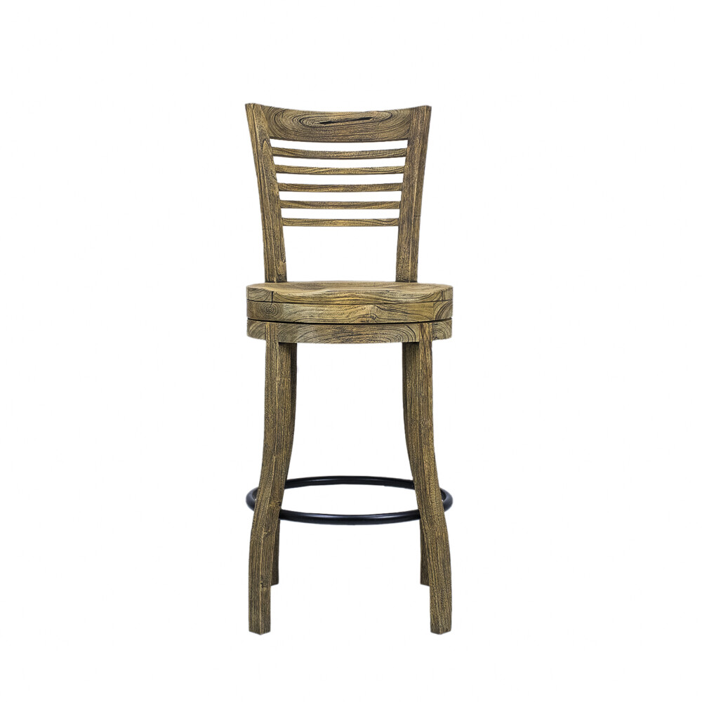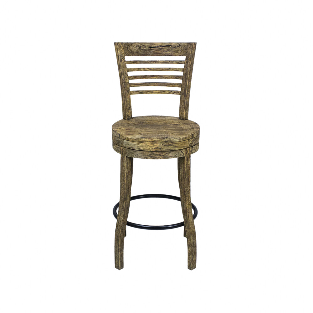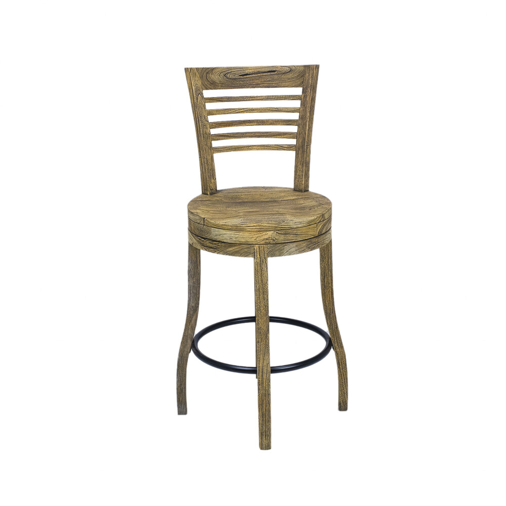 Round seat bar stool with backrest, metal footrest and full swivel smooth rotation