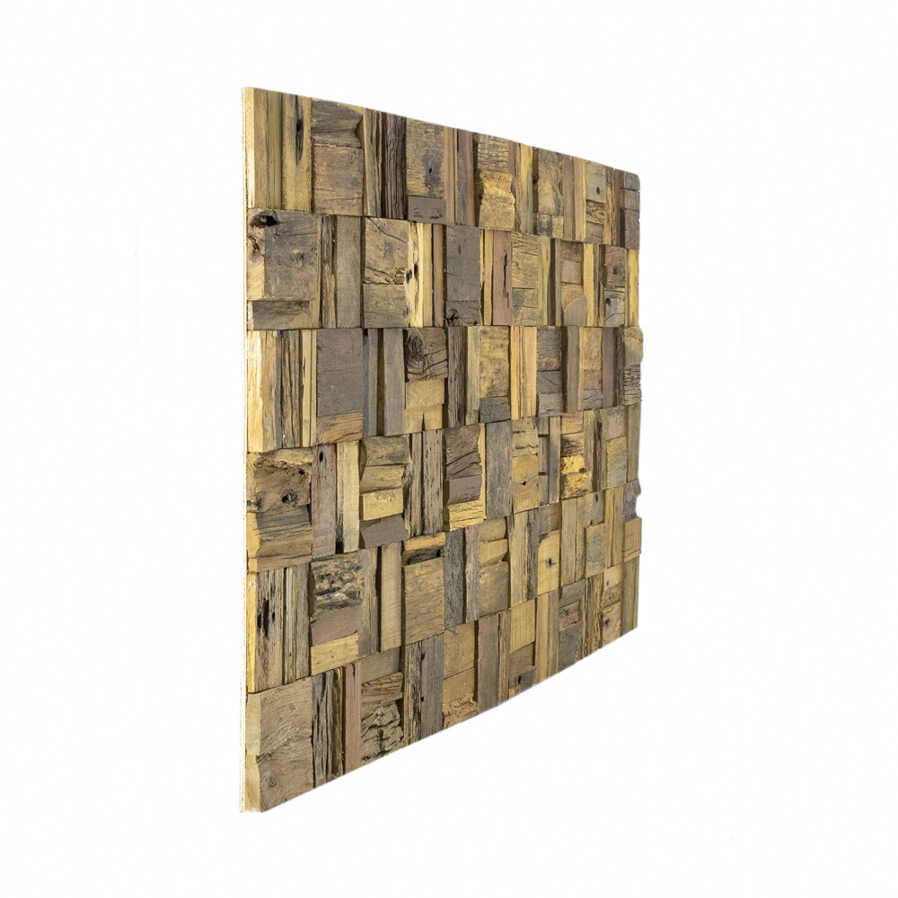 Elevate your living spaces with the warm allure of wood, seamlessly integrated into a stunning mosaic of smaller blocks, each contributing to a harmonious visual symphony