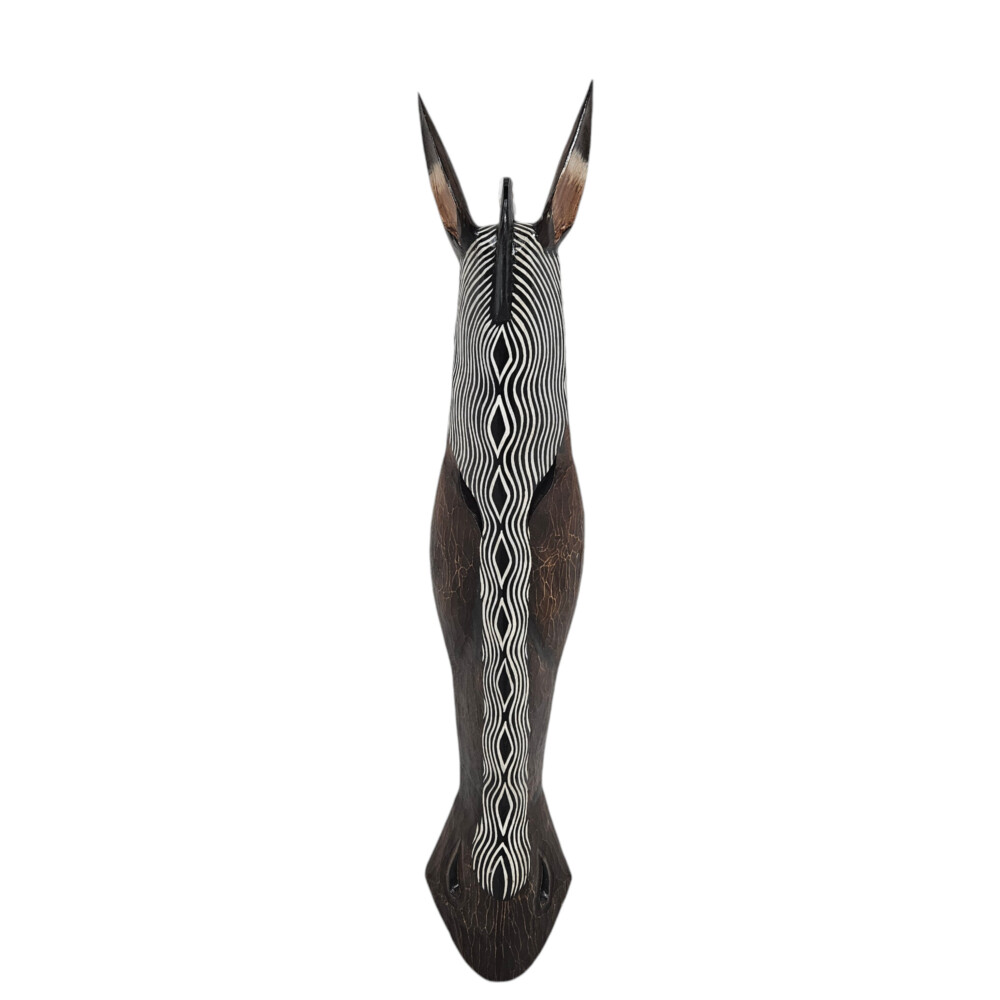Bring a touch of the wild into your home with this striking Wooden Zebra Mask Wall Hanging. Hand-carved from high-quality wood and painted with meticulous attention to detail, this mask captures the essence of the zebra, making it a captivating addition to any space